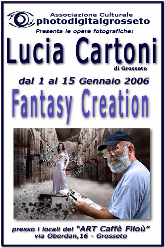 Dal 1 al 15 Gennaio 2006 presso i locali del "Art Cafe Filoù" situato a Grosseto in via Oberdan 16, ho esposto una mostra personale fotografica dal titolo “Fantasy Creation”. La stessa, è composta da 12 immagini in grande formato (50x70).