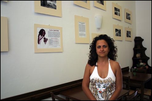 Lucia Cartoni, ritratta durante la sua esposizione a Cecina (LI)